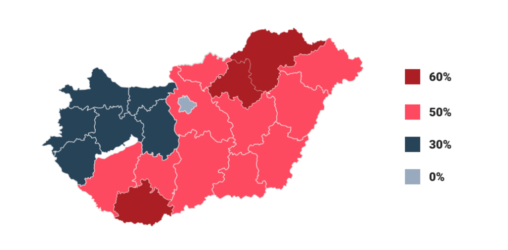 Magasabb, 60%-os támogatási intenzitások Baranya, Borsod-Abaúj-Zemplén és Heves vármegyében